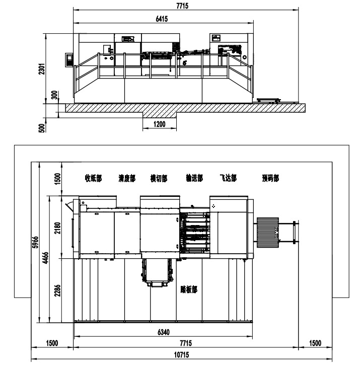 | 整機尺寸(含板框預裝架) | 7715×5366×2301mm (L×W×H)(長含預上紙軌道;寬含腳踏板) |