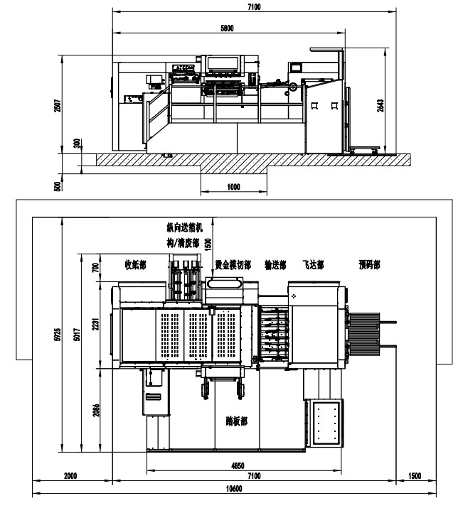 | 整機尺寸 | 7100×5017×2643mm(L×W×H) (長含預上紙軌道;寬含腳踏板) |