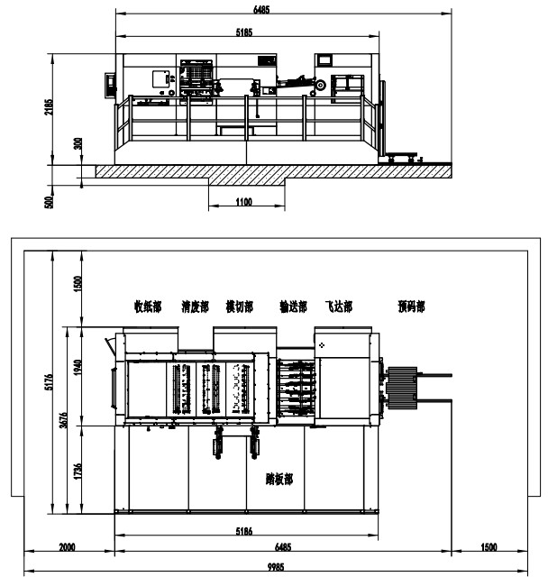 | 整機(jī)尺寸 | 6485×3676×2185mm(L×W×H)(長(zhǎng)含預(yù)上紙軌道;寬含腳踏板) |