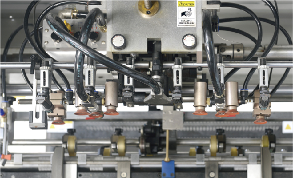 | 02、魚鱗式強力吸紙飛達頭,4 吸 4 送,吸頭可配合紙張的變形狀況調試各種吸紙角度 | 〇 |
