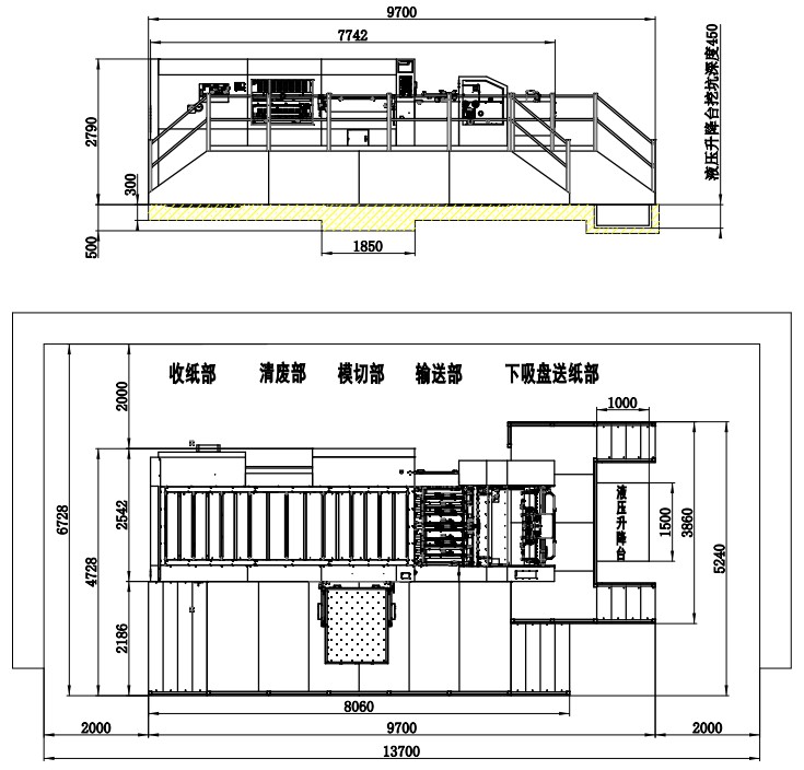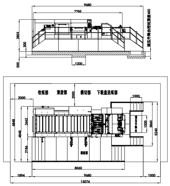 | 整機尺寸 (高堆卷簾式收紙) | 9160×5240×2767mm(L×W×H) (寬含腳踏板) | 9700×5240×2790mm(L×W×H) (寬含腳踏板) | 9680×5240×2803mm(L×W×H) (寬含腳踏板) | 9869×5580×2932mm(L×W×H) (寬含腳踏板) |