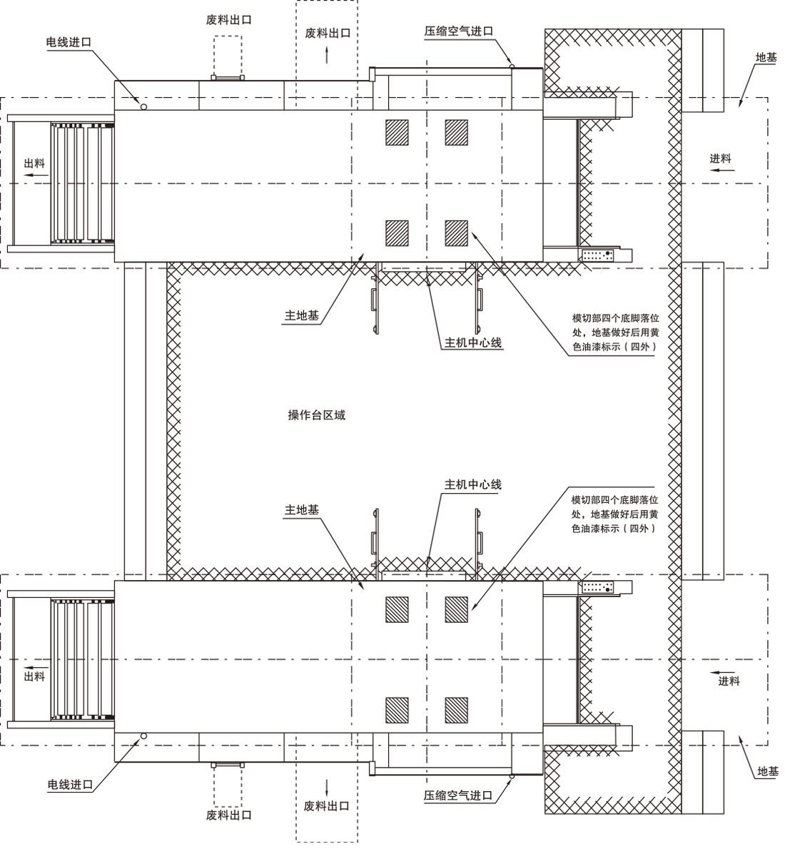 兩臺模切機每班只需一名機長,降低人力成本,同時,兩臺模切機面對面安放的布局,保證了整個作業情況盡在一名機長的目視監控范圍內,方便機長發現異常,排除故障,提高成品率。