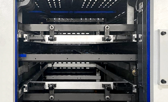 | 05、三縱送箔架采用推拉式裝置,方便送箔架從機內(nèi)拉出更換鋁箔,操作簡便安全 | 〇 |