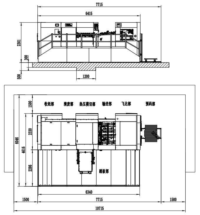 | Machine Dimensions | 7715×4616×2301mm(L×W×H) (L:paper prepared track included, W:platform included) |